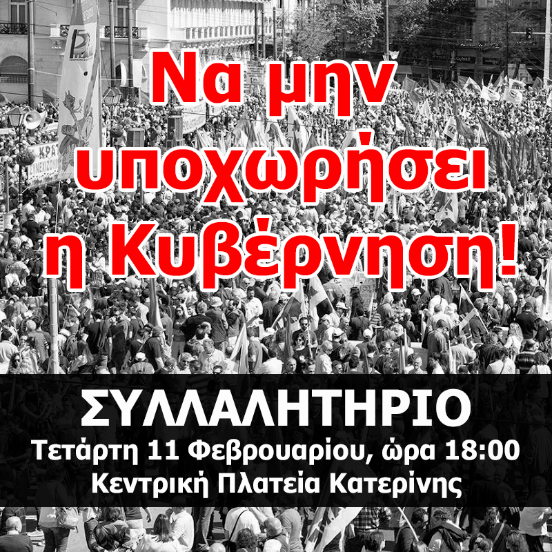 Ανάσα αξιοπρέπειας με Παλλαϊκό συλλαλητήριο στην Κεντρική Πλατεία Κατερίνης, σήμερα, Τετάρτη 11 Φλεβάρη, στις 18:00.
